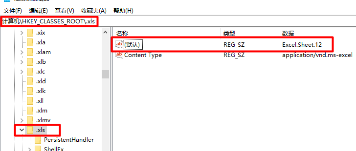 在注册表编辑器中找到路径HKEY_CLASSES_ROOT\.xls,修改其中的默认项,将默认项的值Excel.Sheet.8修改为Excel.Sheet.12即可: