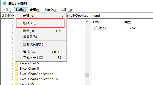 修改完注册表之后可能因为权限问题,导致重启之后内容被重置,打开Excel文件之后又是空白的现象,只需要修改权限即可