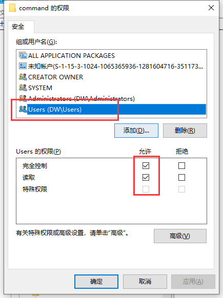 选中users,将完全控制打上勾即可