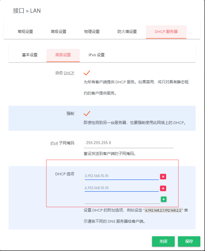 此时192.168.15.15/24已经回到了主机的端口上,至此两机vrrp建立成功,也成功实现双机热备,剩下的只需要去DHCP上将分配的默认网关和DNS修改为192.168.15.15即可