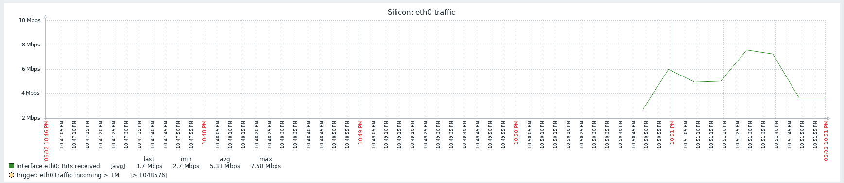 至此,可以从Monitoring中看见有warning告警以及从HOST中可以查看Graphs流量图