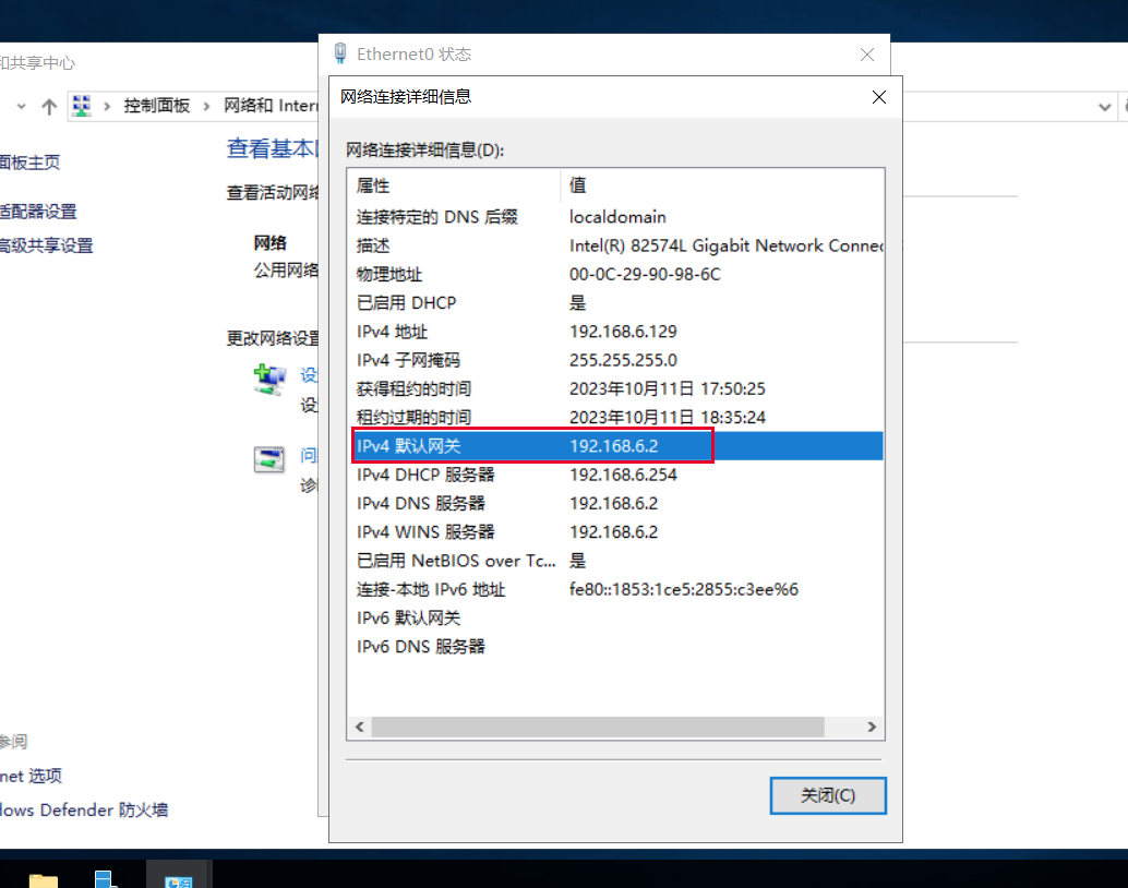 详细信息 -> 查看网关,这边的 IPv4地址是
