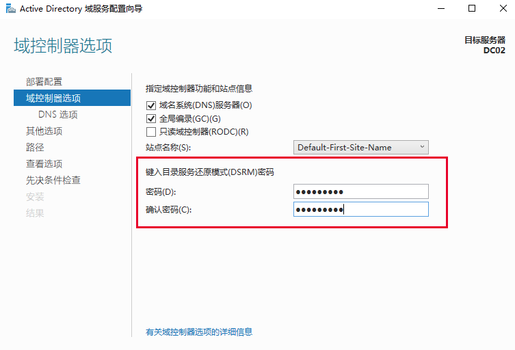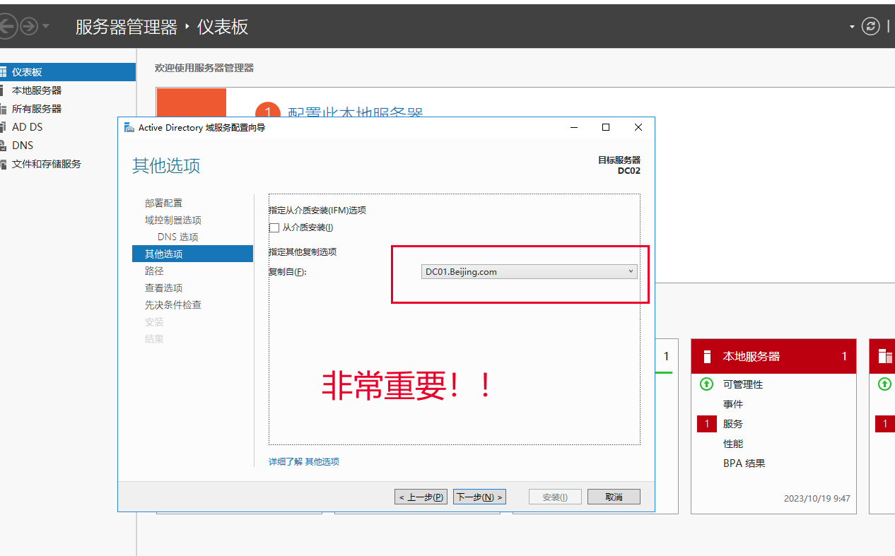设置DC02的优先级,DC01设置为优先级最高的“1”,那么DC02的优先级设置为“2”。DC01出现故障时,DC02继续对外提供服务。最后点击【下一步】