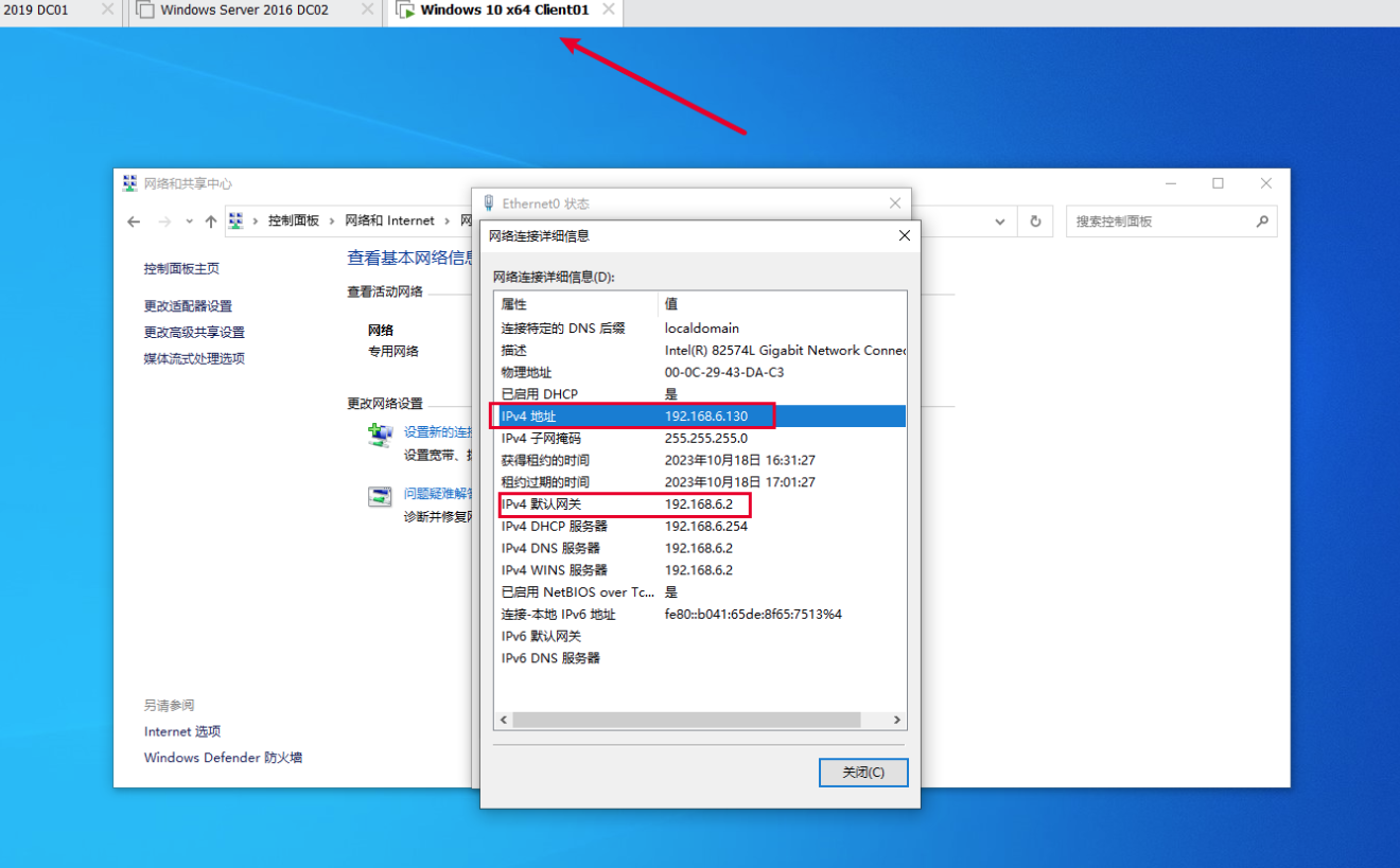 13.4、配置静态id地址和DNS服务器设置为第一台域控服务器