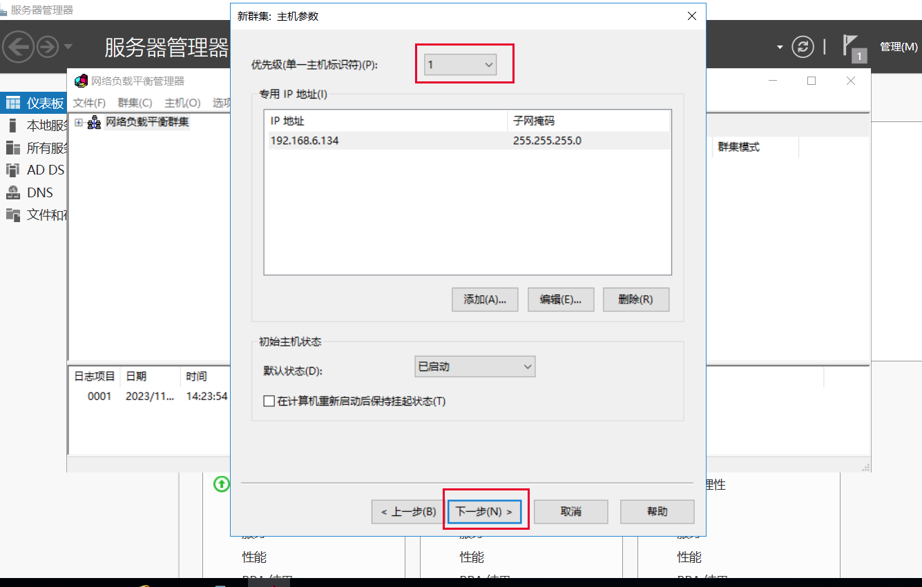- 在【优先级】中选择最高级【1】,即DC01在该群集中优先对外提供服务,点击【下一步】