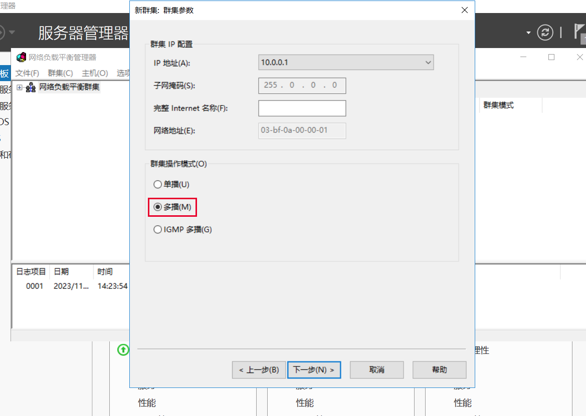 设置群集相关参数,群集的操作模式有单播、多播和IGMP多播。