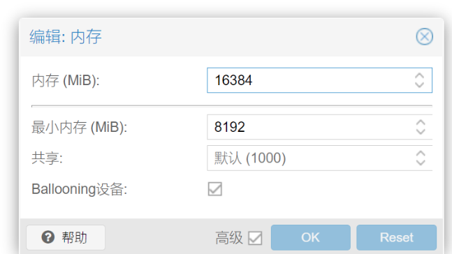 PVE支持动态内存管理,建议打开,实现内存的最大效率.。