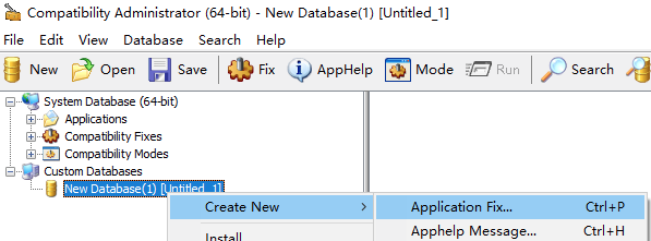 一、Custom Database —— New Database(右键) —— Create New —— Application fix