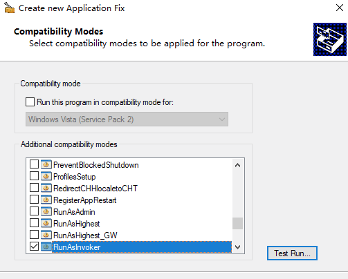 三、Additional compatibility modes —— 勾选 RunAsInvoker(对于某些软件,例如:美图秀秀,只勾选RunAsInvoker)也可以选择 RunAsAdmin。