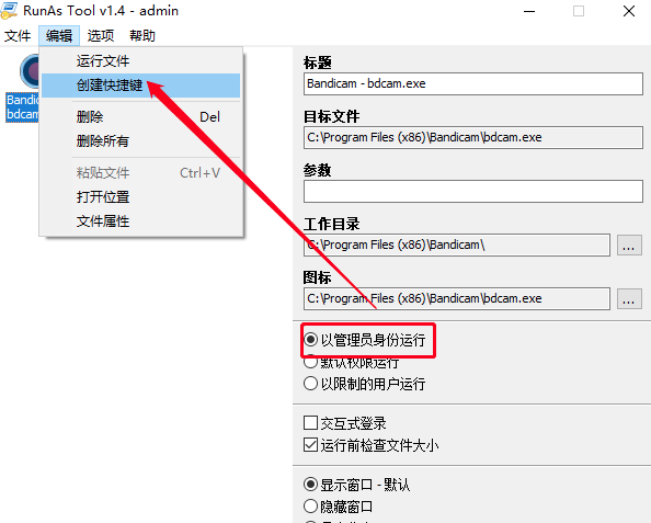 选择 以管理员身份运行,之后编辑–创建快捷方式,用新创建的快捷方式打开软件。