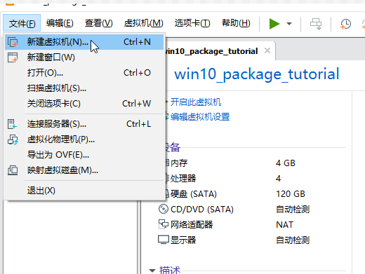 这一阶段是为封装工作进行准备,为虚拟机装上系统后, 这个系统将会成为最终封装成品的基石