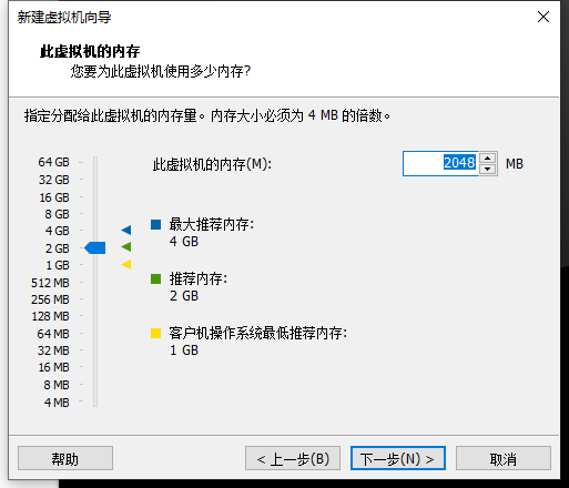 - 虚拟机的内存一般设置2048M(2G)就可以了,有条件的给4096M(4G) 接着”下一步”