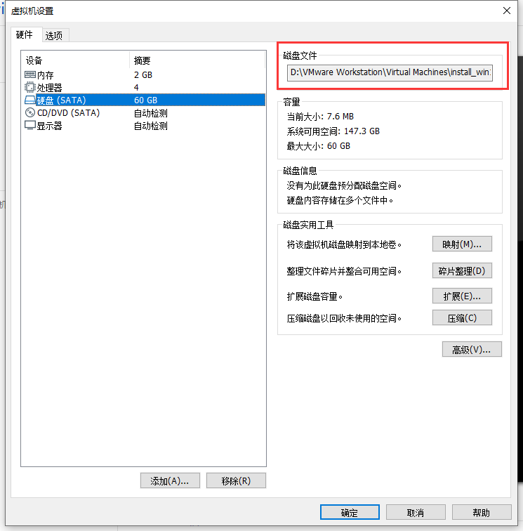 - 选择虚拟机的虚拟硬盘,虚拟硬盘位置可在虚拟机设置中查询