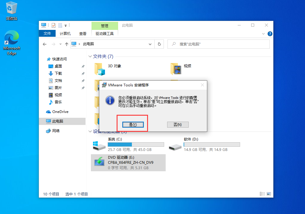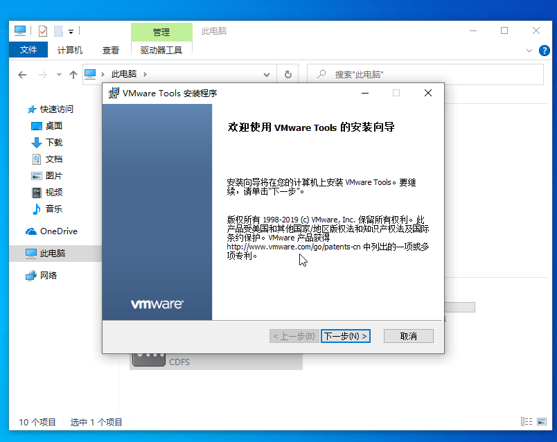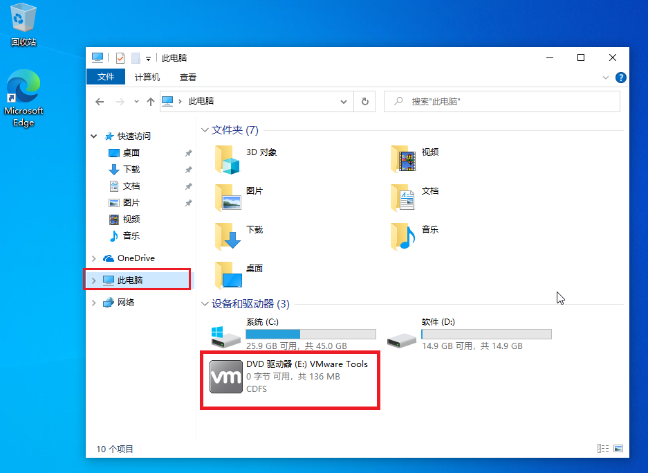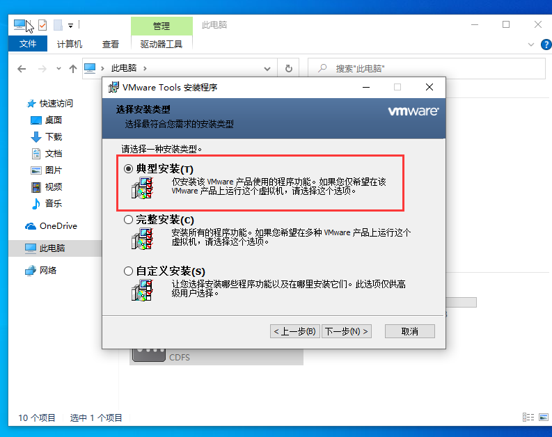 需要注意:如果虚拟机没有自动弹出安装的对话框,可以主动点进文件资源管理器中点击安装