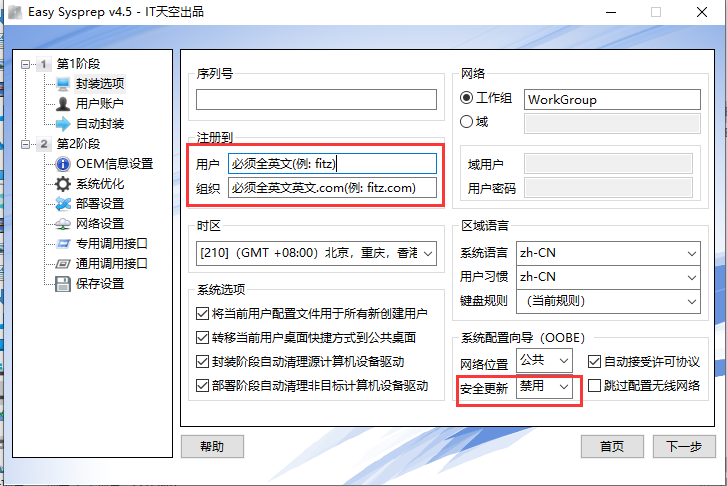 再次填写的信息要与第10-15步完全一致,这样配置文件和最终封装的系统才不会有冲突! 一定要完全一致