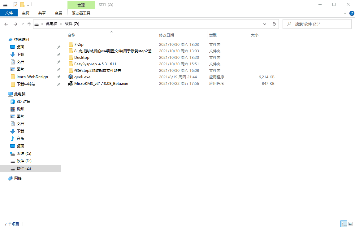 封装工具EasySysprep解压到D盘 – 将完成封装后的es4配置文件(用于修复step2丢失)、geek、7zip复制到D盘