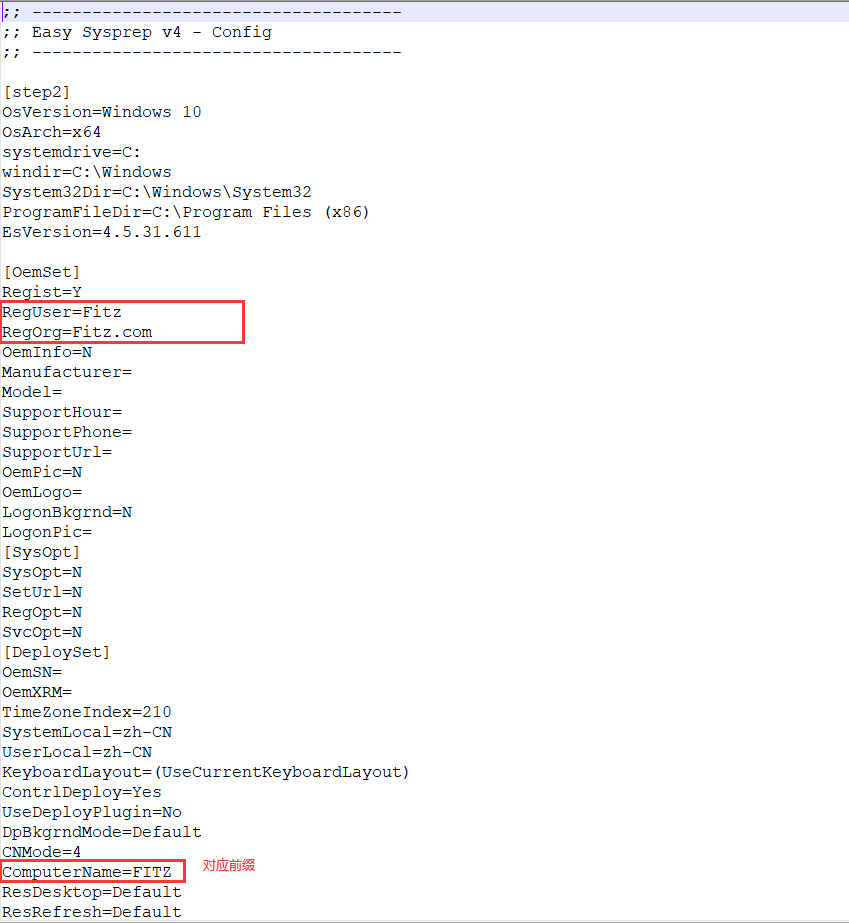 Es4Set.es4文件复制一份到到C:\Windows\ES4\Es4Set.step2中,即:第27步所做的事 - 第3步:根据自己在封装软件中的设置对文件中红框部分进行修改,配置文件示例如图,注意:信息要与实际封装一致